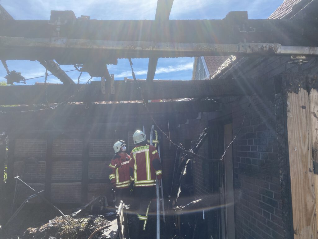 Feuer an Anbau – Gießfahrzeug der Samtgemeinde kann Feuer eindämmen