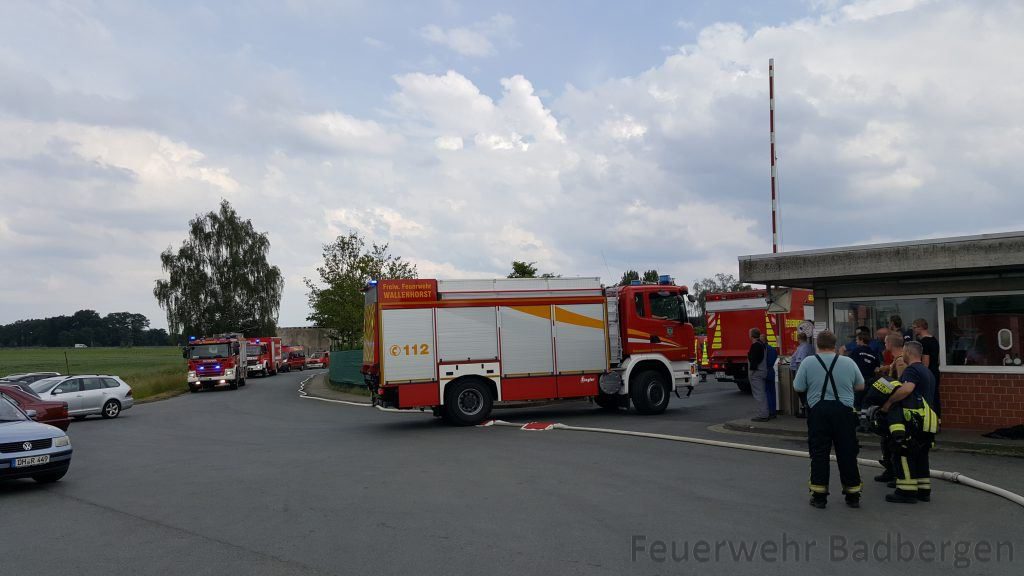 TEXT UND FOTO: FEUERWEHR BADBERGEN Einsatz: BMA Zeitpunkt: 10.06.2019 11:41 Uhr Ort: Badbergen, Bahnhofstraße Zu einer ausgelösten BMA in einem Industriebetrieb in der Bahnhofstraße wurden wir heute gegen Mittag alarmiert. Im Verlauf der Erkundung wurde ein starker Ammoniakaustritt festegestellt, woraufhin die Alarmierung zu ABC 1 erhöht würde. Gemäß der GAMS Regel wurden der Fachzug Umwelt Nord und Süd, sowie der Fachzug Messen und Spüren alarmiert. Es erfolgte die komplette Absperrung umliegender Straßen und die Sperrung der Bahnstrecke Osnabrück-Oldenburg. Die anliegende Siedlung in südlicher Richtung, sowie Gehöfte mussten aufgrund der Windlage evakuiert werden. Anlaufstelle war das Heimathaus in Badbergen, wo die Betreuung durch den Betreuungstrupp der DRK Bissendorf stattfand. Das Leck wurde gegen 16 Uhr verschlossen und nach mehreren Messungen konnten die Anwohner gegen 18.30 in ihre Häuser zurückkehren. Gegen 19.30 war der Einsatz für uns auch beendet. Mit im Einsatz waren: Freiwillige Feuerwehr Wehdel Freiwillige Feuerwehr Grönloh Freiwillige Feuerwehr Nortrup Fachzug Umwelt Nord Fachzug Umwelt Süd Fachzug Messen und Spüren SEG mit RTW und Atemschutzrehabilitationszone Feuerwehrbereitschaft Nord mit Feldküche UGöEL DRK Osnabrück Nord Bereitschaft DRK SEG Betreuung Landkreis Osnabrück Firma Kältetechnik Dresen + Bremen GmbH Insgesamt ca. 200 Einsatzkräfte vor Ort.