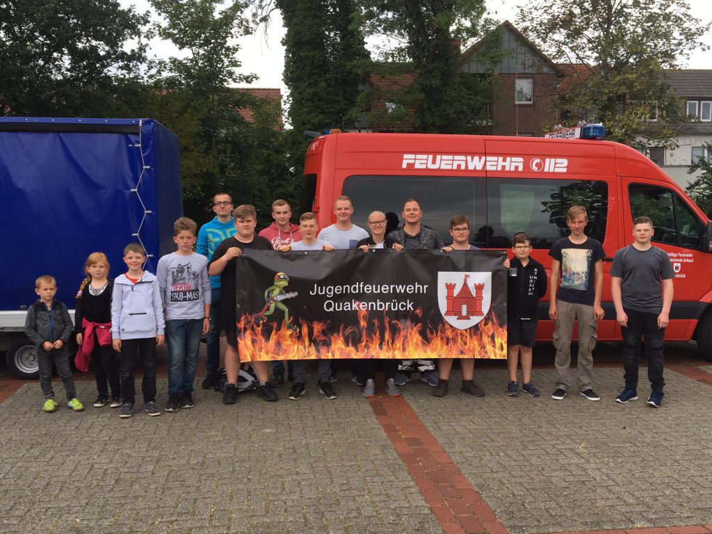 Am heutigen Donnerstag standen viele Programmpunkte auf dem Plan. Am Morgen nach dem Frühstück hieß es „Antreten zur Lagerolympiade“ wo die einzelnen Jugendfeuerwehren bei verschiedenen Spielen mal wieder ihr Geschick, Strategie, Geduld und logisches Denken unter Beweis stellen mussten. Die Punkte, die es bei den verschiedenen Stationen zu ergattern gab, flossen wieder in das Gesamtergebnis von der Stadtrallye und dem Volleyballturnier mit ein. Nach dem Mittagessen ging es dann für alle Jugendfeuerwehren zum gemeinsamen Planschen ins Nettebad nach Osnabrück. Gegen 20Uhr, bevor es dann zur Siegerehrung und somit zur Verkündigung des Siegers kam, begrüßte der Gemeindejugendfeuerwehrwart Sven Koopmeyer die Ortsbrandmeister und Stellvertreter der 4 Jugendfeuerwehren sowie den neuen Gemeindebrandmeister Marcus Goeke und seinen Stellvertreter Ludwig Möllmann. Nach ein paar kurzen Worten der Gäste, ging es direkt weiter mit der langersehnten Siegerehrung. Die meisten Punkte hatte sich in diesem Jahr die Jugendfeuerwehr Badbergen erspielt und somit den 1. Platz belegt. Gefolgt von den Jugendfeuerwehren aus Quakenbrück (2. Platz), der Jugendfeuerwehr Nortrup (3. Platz) und der Jugendfeuerwehr aus Menslage (4.Platz). Der Rest des Abends stand dann noch zur freien Verfügung. Bis morgen. Text: Jens Ludmann, FFQ Fotos: Jens Ludmann, FFQ + Jugendwarte der Jugendfeuerwehr